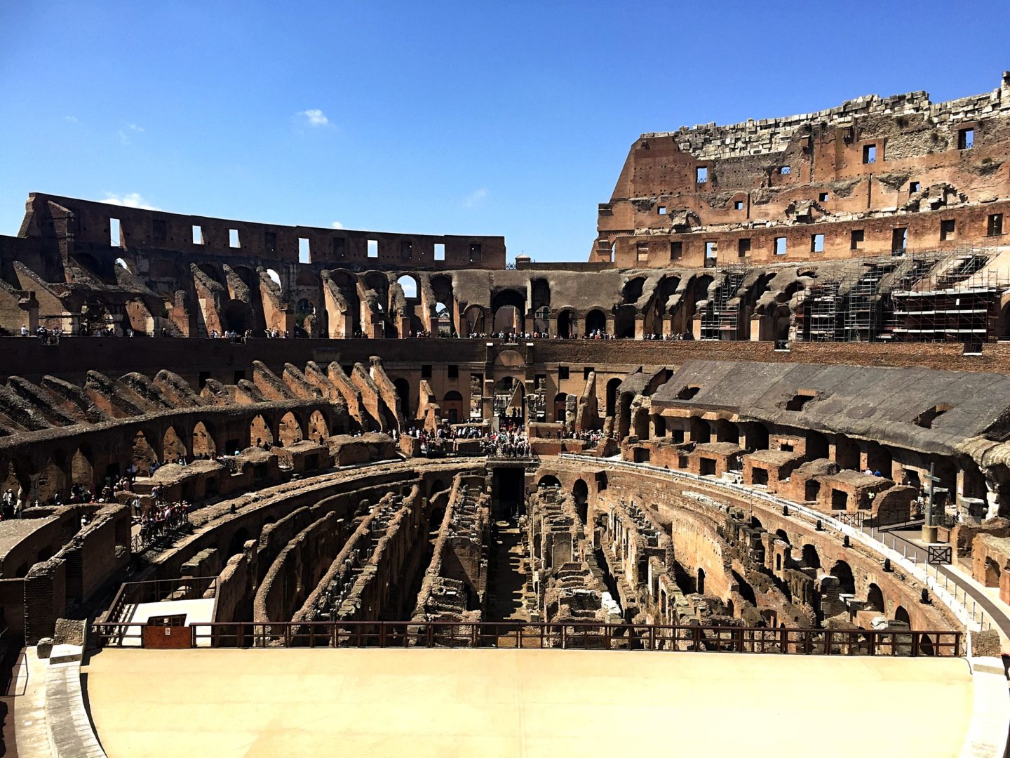The Hypogeum (means underground) is below the Colosseum with two levels of connected corridors and tunnels leading into and out of the Colosseum. There. the Romans kept convicts, gladiators, and animals before entering the arena.